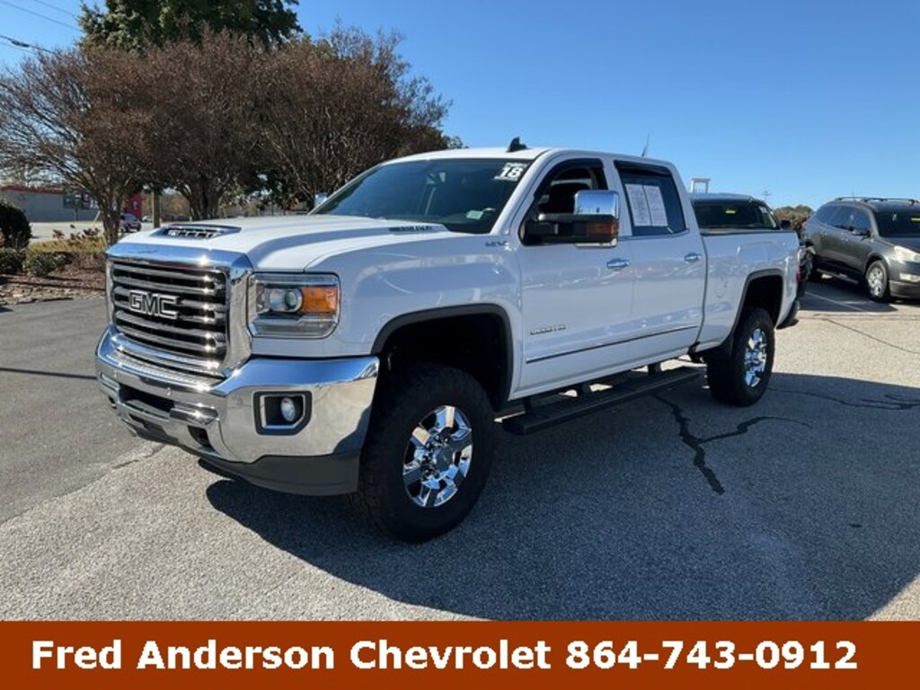 Check out all these great Duramax Plus Package (Bluetooth® For Phone, Bose 6 Speaker Sound System, Chrome Power-Adjustable Heated Outside Mirrors, Radio: AM/FM/SiriusXM/HD w/Navigation, and Ultrasonic Front & Rear Park Assist), Heavy-Duty Handling/Trailering Suspension Package, Preferred Equipment Group 4SA (110-Volt AC Power Outlet, 4.2" Diagonal Color Display Driver Info Center, Auto-Dimming Inside Rear-View Mirror, Chrome Bodyside Moldings, Chrome Door Handles, Chrome Mirror Caps, Color-Keyed Carpeted Floor Mats, Color-Keyed Carpeting Floor Covering, Deep-Tinted Glass, Digital Steering Assist, Driver & Front Passenger Vanity Mirror Visors, Dual-Zone Automatic Climate Control, Electric Rear-Window Defogger, Electronic Shift Transfer Case, EZ-Lift & Lower Tailgate, Front Halogen Fog Lamps, GMC 4G LTE, GMC Connected Access, HD Radio, Heated Power-Adjustable Outside Mirrors, Leather-Wrapped Steering Wheel, LED Cargo Box Lighting, Manual Tilt-Wheel/Telescoping Steering Column, OnStar & GMC Connected Services Capable, Power Windows w/Driver Express Up & Down, Power-Adjustable Pedals For Accelerator & Brake, Rear 60/40 Folding Bench Seat (Folds Up), Rear Wheelhouse Liners, Remote Keyless Entry, Remote Locking Tailgate, Remote Vehicle Starter System, Single Slot CD/MP3 Player, SiriusXM Satellite Radio, Steering Wheel Audio Controls, Theft Deterrent System (Unauthorized Entry), and Universal Home Remote), Trailering Equipment (Trailer Brake Controller), 18" Chromed Aluminum Wheels, 4-Wheel Disc Brakes, 6 Speakers, ABS brakes, Adjustable pedals, Air Conditioning, Alloy wheels, AM/FM radio: SiriusXM, Assist Steps Not Desired or Alternate Step Desired, Auto-dimming door mirrors, Auto-dimming Rear-View mirror, Automatic temperature control, Bodyside moldings, Brake assist, Bumpers: chrome, CD player, Chrome wheels, Compass, Delay-off headlights, Driver door bin, Driver vanity mirror, Dual front impact airbags, Dual front side impact airbags, Electronic Stability Control, Engine Block Heater, Exhaust Brake, Exterior Parking Camera Rear, Front 40/20/40 Split Bench Seat, Front anti-roll bar, Front Center Armrest w/Storage, Front dual zone A/C, Front fog lights, Front License Plate Kit, Front reading lights, Front wheel independent suspension, Fully automatic headlights, Garage door transmitter, Heated door mirrors, Heated Driver and Front Passenger Seats, Heated front seats, High-Intensity Discharge Headlights, Illuminated entry, Leather Appointed Seat Trim, Low tire pressure warning, Memory seat, Occupant sensing airbag, Outside temperature display, Overhead airbag, Overhead console, Panic alarm, Passenger door bin, Passenger vanity mirror, Power door mirrors, Power driver seat, Power passenger seat, Power steering, Power windows, Power-Adjustable Heated Outside Mirrors, Premium audio system: GMC Infotainment System, Radio: AM/FM/SiriusXM/HD, Rear reading lights, Rear seat center armrest, Rear step bumper, Rear window defroster, Remote keyless entry, Security system, Speed control, Speed-sensing steering, Split folding rear seat, Steering wheel mounted audio controls, Tachometer, Telescoping steering wheel, Tilt steering wheel, Traction control, Trip computer, Turn signal indicator mirrors, Variably intermittent wipers, and Voltmeter. Summit White 2018 GMC Sierra 2500HD SLT Clean CARFAX. Odometer is 3964 miles below market average! **STEERING WHEEL AUDIO CONTROLS**, **NO ACCIDENT HISTORY ON CARFAX**, **LOCAL TRADE**, **KEYLESS ENTRY**, **GREAT CARFAX SERVICE HISTORY**, **BEDLINER**, **AUTOMATIC TRANSMISSION**, **4WD**, **BACK UP CAMERA**, **BLUETOOTH**, **POWER SEAT**, **Heated Seats**.