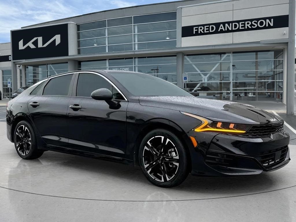 CARFAX One-Owner. 2024 Kia K5 GT-Line Ebony Black 4-Wheel Disc Brakes, 6 Speakers, ABS brakes, Air Conditioning, Alloy wheels, AM/FM radio: SiriusXM, Apple CarPlay & Android Auto, Auto High-beam Headlights, Automatic temperature control, Brake assist, Bumpers: body-color, Carpeted Floor Mats, Cloth/SynTex Seat Trim, Delay-off headlights, Driver door bin, Driver vanity mirror, Dual front impact airbags, Dual front side impact airbags, EC Mirror w/Homelink, Electronic Stability Control, Forward Collision Avoidance-Assist, Four wheel independent suspension, Front anti-roll bar, Front Bucket Seats, Front Center Armrest, Front dual zone A/C, Front fog lights, Front reading lights, Fully automatic headlights, GT-Line Premium Package, Heated door mirrors, Heated Front Bucket Seats, Heated front seats, Highway Driving Assist, Illuminated entry, Knee airbag, Leather steering wheel, LED Projection Headlamps, Low tire pressure warning, Navigation System, Occupant sensing airbag, Outside temperature display, Overhead airbag, Overhead console, Panic alarm, Passenger door bin, Passenger vanity mirror, Power door mirrors, Power driver seat, Power steering, Power windows, Radio data system, Radio: AM/FM/MP3 Audio System, Rear anti-roll bar, Rear seat center armrest, Rear side impact airbag, Rear window defroster, Remote keyless entry, Security system, Smart Cruise Control w/Stop & Go, Speed control, Speed-sensing steering, Split folding rear seat, Spoiler, Sport steering wheel, Steering wheel mounted audio controls, Tachometer, Telescoping steering wheel, Tilt steering wheel, Traction control, Trip computer, Turn signal indicator mirrors, Variably intermittent wipers, Wheels: 18" Gloss Black Machined Finish Alloy.