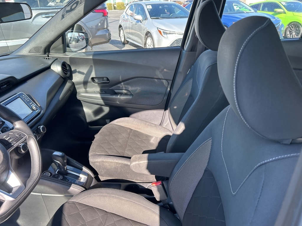 CARFAX One-Owner. 2019 Nissan Kicks S Super Black 16" Steel Wheels w/Full Covers, 3.927 Axle Ratio, 6 Speakers, ABS brakes, Air Conditioning, AM/FM radio, Brake assist, Bumpers: body-color, Carpeted Floor Mats w/Cargo Mat, Cloth Seat Trim, Driver door bin, Driver vanity mirror, Driver's Seat Mounted Armrest, Dual front impact airbags, Dual front side impact airbags, Electronic Stability Control, Front anti-roll bar, Front Bucket Seats, Front reading lights, Front wheel independent suspension, Fully automatic headlights, Illuminated entry, Knee airbag, Low tire pressure warning, Occupant sensing airbag, Overhead airbag, Panic alarm, Passenger door bin, Passenger vanity mirror, Power door mirrors, Power steering, Power windows, Radio data system, Radio: AM/FM Audio System, Rear reading lights, Rear window defroster, Rear window wiper, Remote keyless entry, Roof rack: rails only, Speed control, Splash Guards Grain (4 Piece), Split folding rear seat, Sport steering wheel, Steering wheel mounted audio controls, Tachometer, Telescoping steering wheel, Tilt steering wheel, Traction control, Trip computer, Variably intermittent wipers.